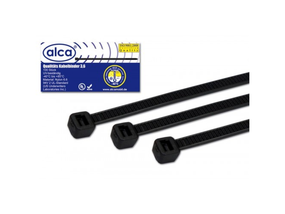 Хомут—стяжка кабельная пластиковая W3.6 L300, цвет черный, 100 шт. в упаковке, температура эксплуатации от — 40 до + 85, материал нейлон, устойчивость к окислению и травлению.