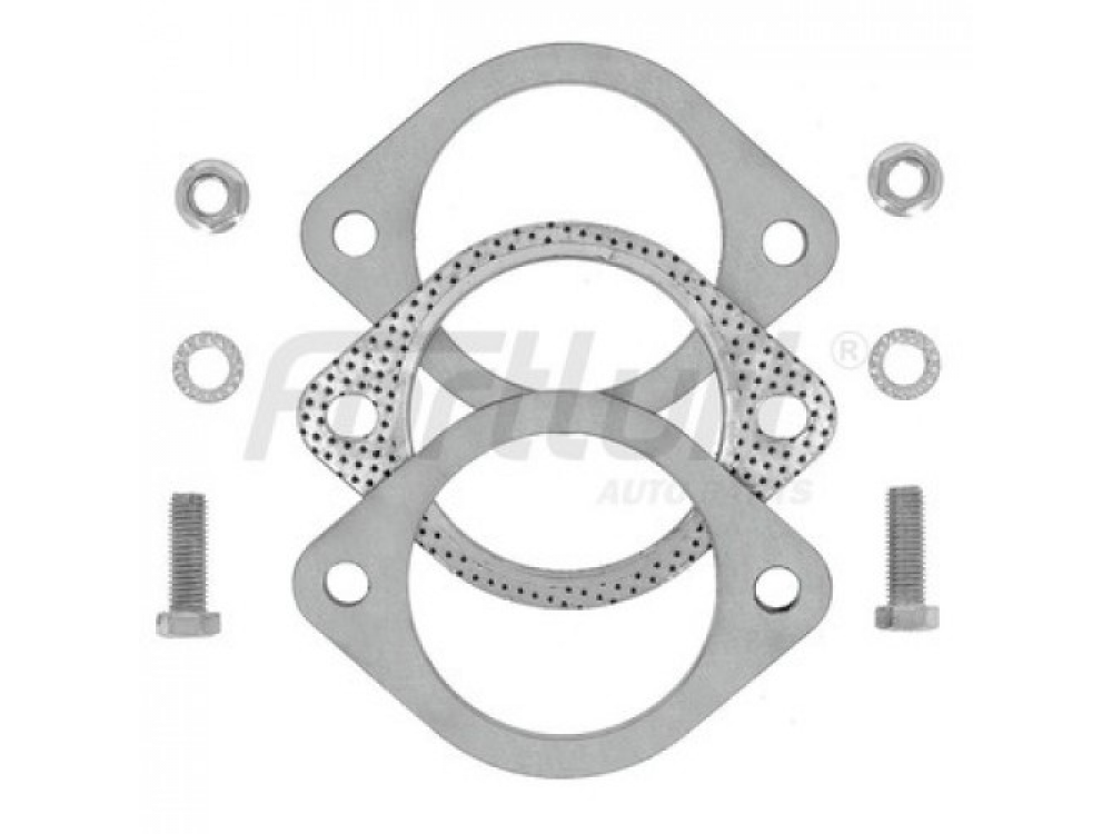 Фланцевое соединение является одним из самых основных соединений компонентов выхлопной системы. Один фланец приваривается к одной части выхлопной трубы, другой к ответной и соединяется болтами через прокладку. Толщина фланца 8мм, изготовлен фланец из нержавеющей стали, что обеспечивает долгосрочный срок эксплуатации.