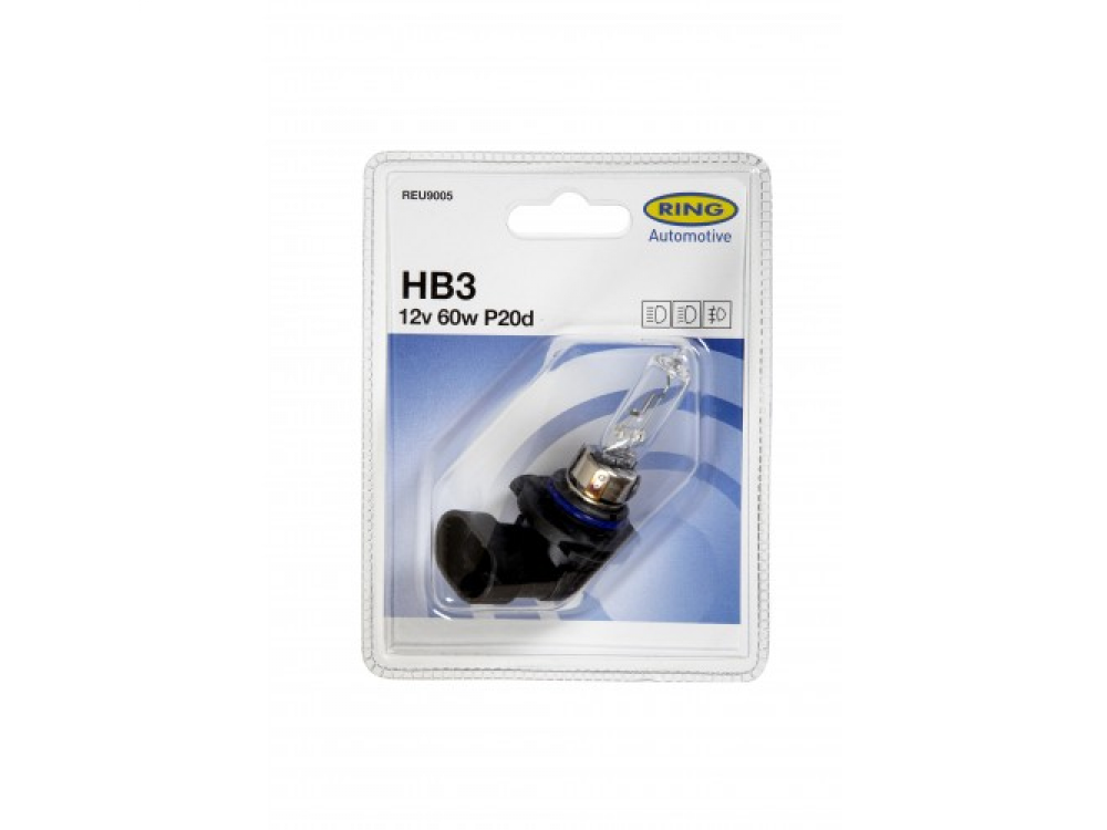 Автолампа RING в пластиковой упаковке (по 1 шт): 12 вольт, мощность 60W, цоколь HB3 (P20d)