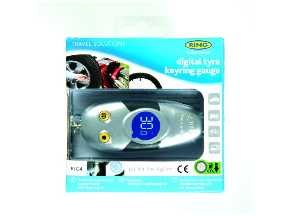 RTG4 - это удобный цифровой манометр с креплением для ключей. Это здорово иметь с собой манометр, на случай, если ваши шины нуждаются в проверке. У этого манометра есть точный датчик, который дает показания в PSI, кПа, БАР и кг / см2. Показания легко увидеть на цифровом экране с подсветкой. Манометр поставляется со встроенным светодиодом, который поможет вам найти вентиль шины в темноте.