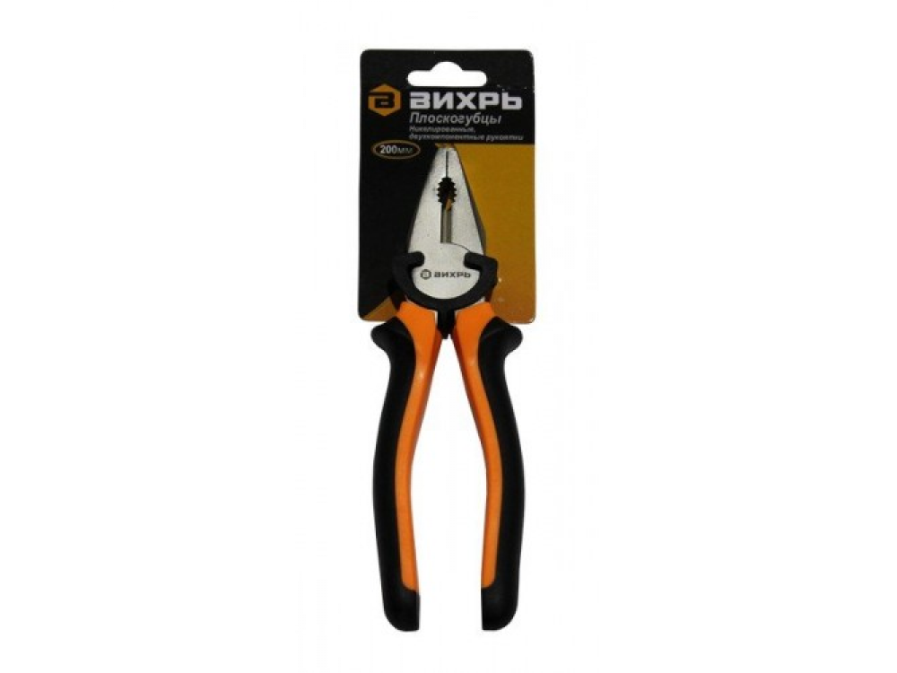 Плоскогубцы ВИХРЬ 200мм - удобный инструмент для слесарно-монтажных работ. Лезвия никелированные, рукоятки из двухкомпонентного материала и не скользят в руках. Эргономичная конструкция обеспечивает надежный захват деталей.