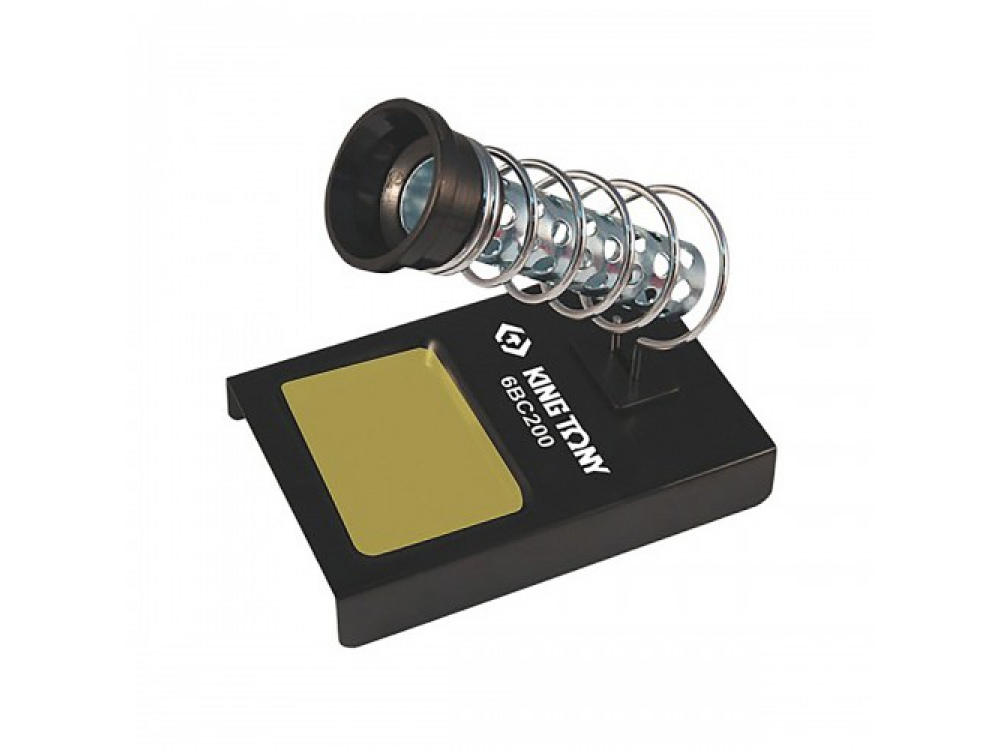 Подставка для паяльника KING TONY Характеристики: - Имеет двухслойную металлическую конструкцию, защищает руки мастера и окружающие предметы от возможного соприкосновения с нагретым устройством - Поставляется со специальной губкой для очистки наконечника от припоя - Для хранения самой подставки она может разбираться, что экономит пространство