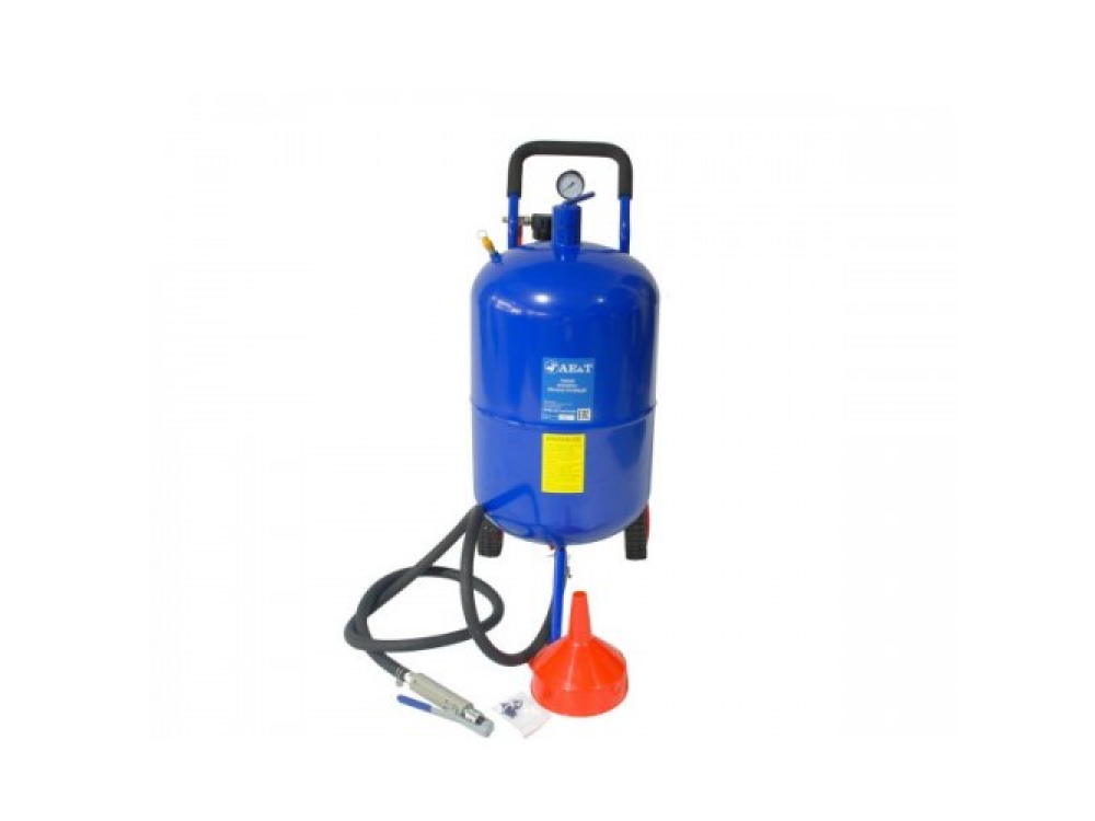 Аппарат пескоструйный T06520 AE&T напорного типа с резервуаром емкостью 76л оборудован новым пескоструйным пистолетом и соответствующими деталями, сверхмощный, полностью стальная конструкция. Для очистки с помощью алюминиевой окиси или стеклянных шариков.