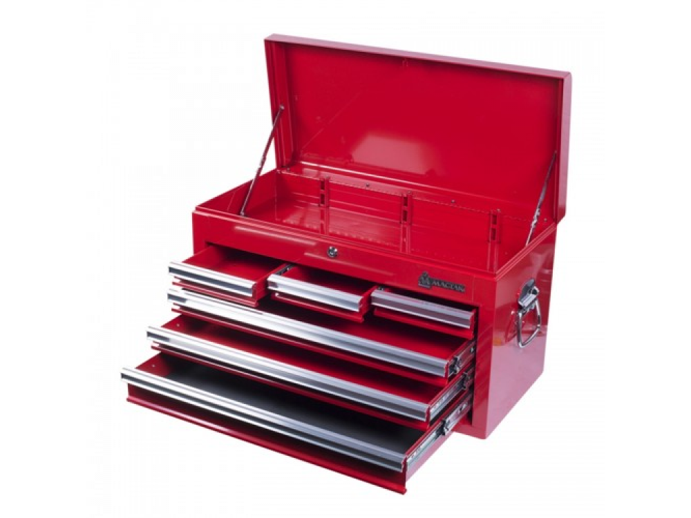 Ящик инструментальный, 6 полок, красный 511-06570R служит для организации рабочего места в любом производственном помещении, на станциях технического обслуживания или авторемонтных мастерских, хранение инструмента, мобильность. Особенности: - 6 выдвижных полок; - Центральный замок; - Переносной стальной лоток. Технические характеристики: - Размеры верхнего отсека: 640х290х115 мм - Размеры выдвижных полок: 3 - 170х270х40 мм 2 - 570х270х40 мм 1 - 570х270х65 мм - Материал: сталь - Цвет: красный - Габариты: 658 х 308 х 370 мм - Вес: 22,8 кг