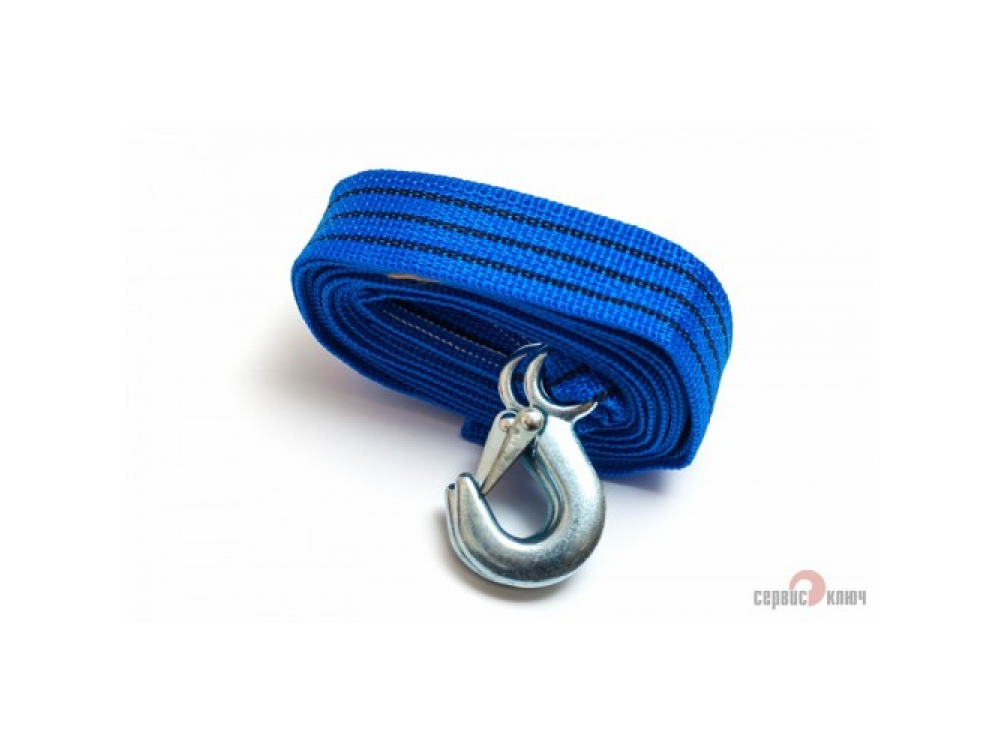 Трос ленточный в пакете (2 крюка). Изготовлен из высокопрочной полипропиленовой нити. Предназначен для буксирования транспортных средств. Длинна не менее 4,5метров. Соответствует ПДД. Обеспечивает плавное трогание.